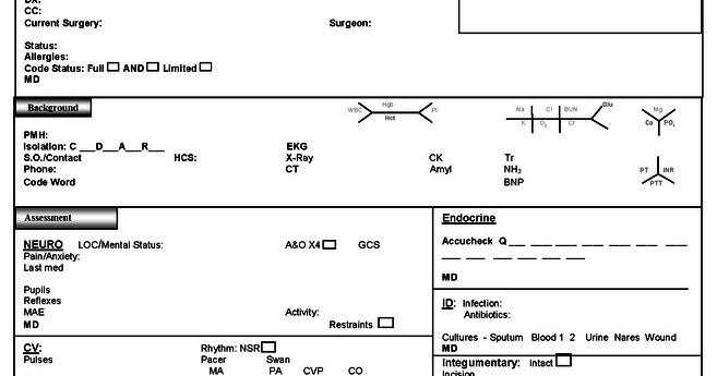 Nursing Handoff Report Sheet 06 Icu D49ozeoq9249 from idoc.pub We asked you for your best brain sheets, and you delivered! Which ones do you all use? Stay organized on the clinical floor with our easy to use nursing report sheets. So we received a private email regarding a nursing student who is unsure what to expect on a intensive care unit (icu) placement coming up later this year. This nursing report sheet does a pretty good job of outlining the information an icu nurse needs to know. 530 x 686 png 21 кб. Get free brain sheets for icu and tele and be the most awesome nurse (or student nurse) on the unit! 3) icu with charting reminders.